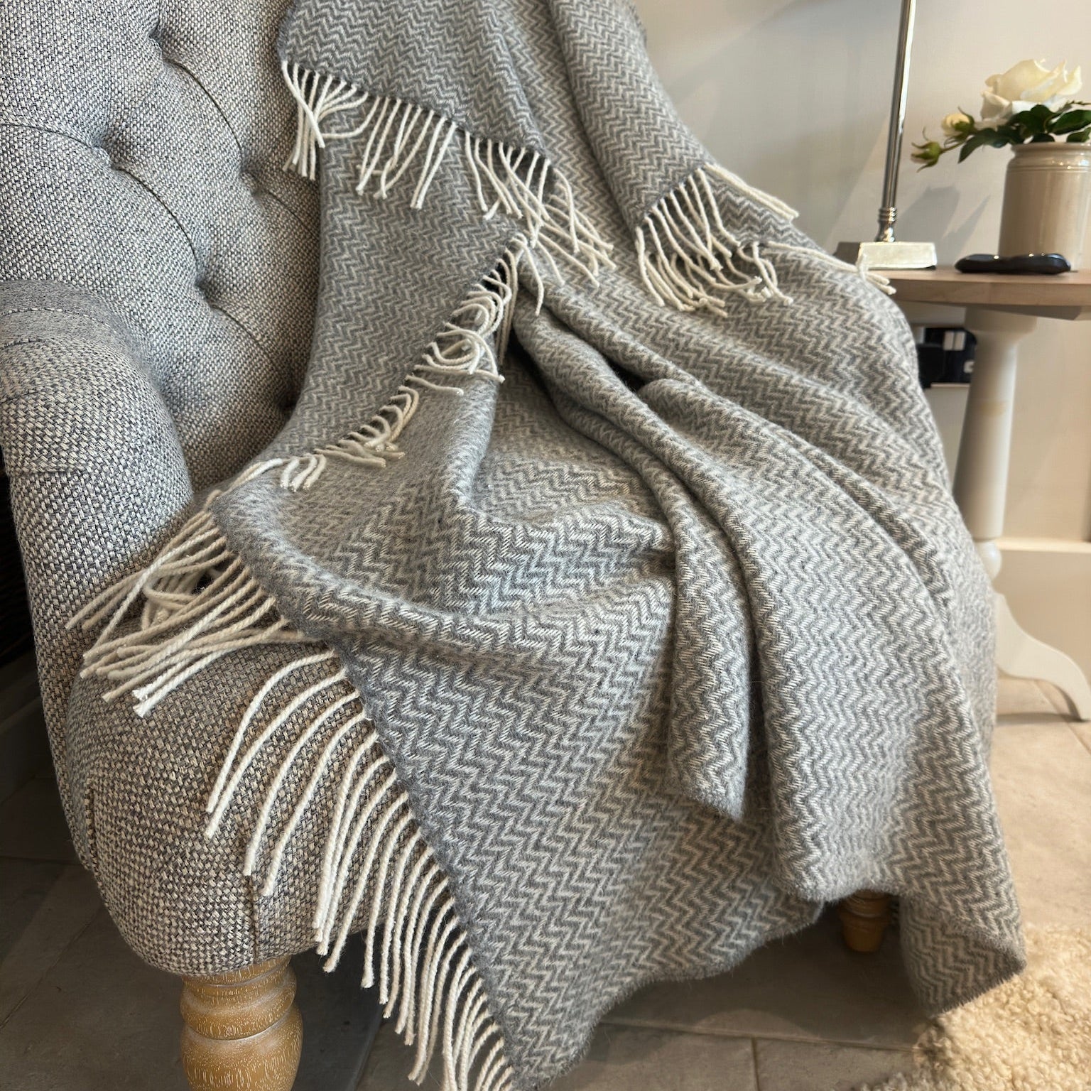 Windsor Chevron Throw in Mist | British Pure Wool Blanket