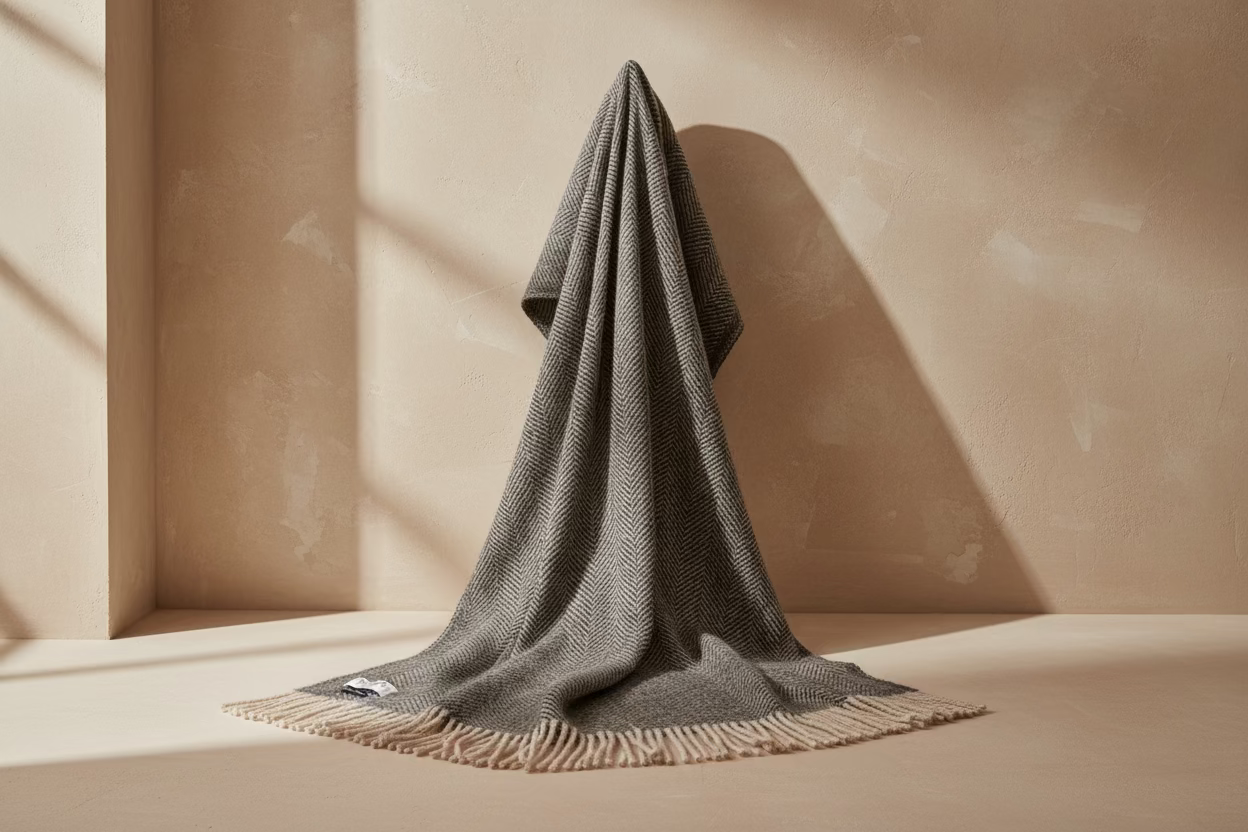 Pure wool regulates temperature, gently holding heat without overheating and remaining comfortable throughout the seasons. The reassuring weight, texture and durability are what allow a blanket to become part of a home rather than simply decoration.