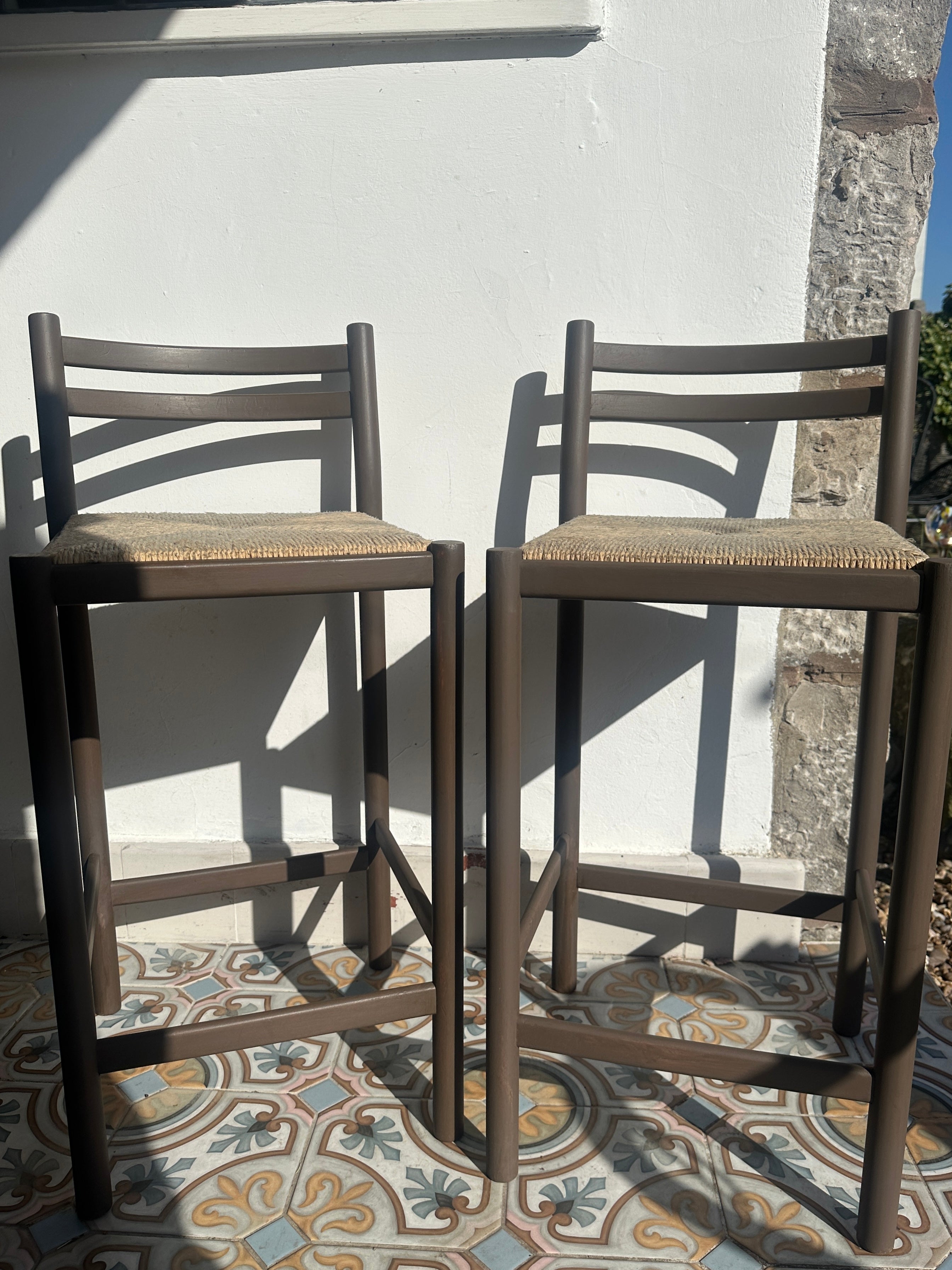 THE WICKER DUO | Pair of Woven Wicker Topped Stools