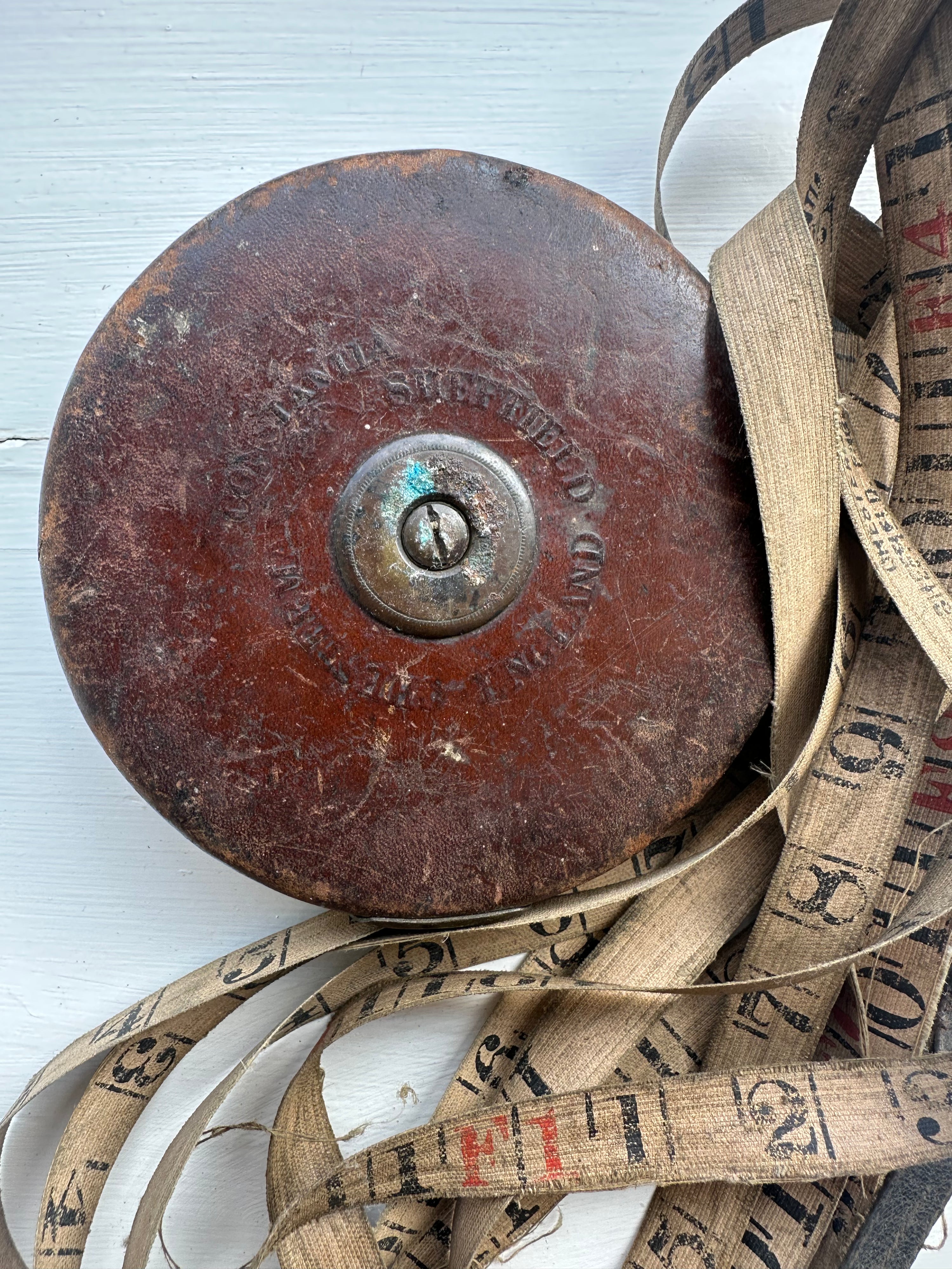 Vintage Chesterman Brass & Leather Cloth Tape Measure