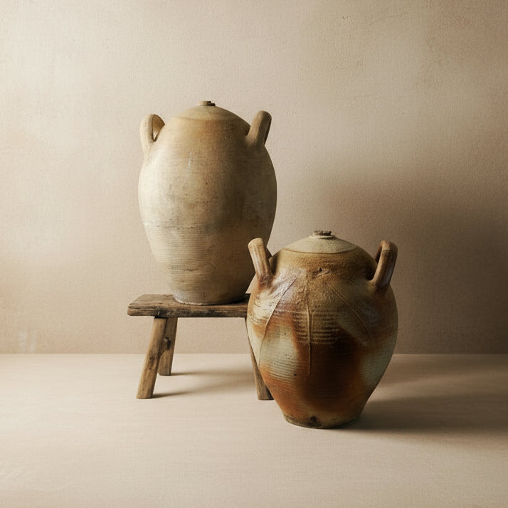 Some are antique finds, others are newly made with an aged, storied presence but all are chosen for how they bring warmth, depth, and earthiness to a space. Perfect for shelf styling, dried florals, or simply standing quietly on their own, these handmade pieces invite a slower, more intentional rhythm at home.